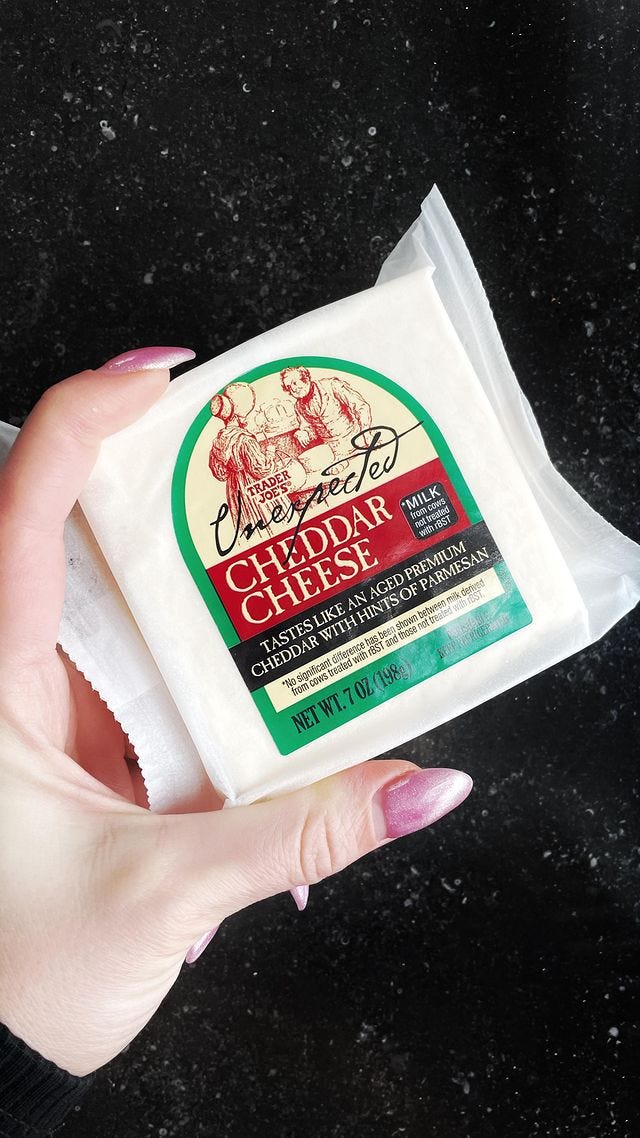 Get yourself one or two splurge cheeses, then find some that are lower priced. Block cheddars, young goudas, and fresh chèvre are all pretty affordable options that are also very versatile. I also recommend going hard on the accompaniments, with lots of fresh grape bunches, crackers, fig jam, salted pecans, and fun unexpected snacks like chocolate covered pretzels. I usually get my pairings and some of the cheeses at Trader Joe’s (my favorite picks from there are featured in the video below).